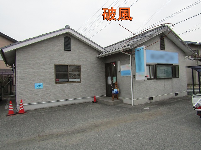 こちらは借家で店舗が入っています。今回は足場がかかっている箇所と破風・鼻隠しのみの塗装です。以前増築工事をした建物で古い方をメンテナンスするということです。シーリング(コーキング)に関しては建物全体を打ち替えます。