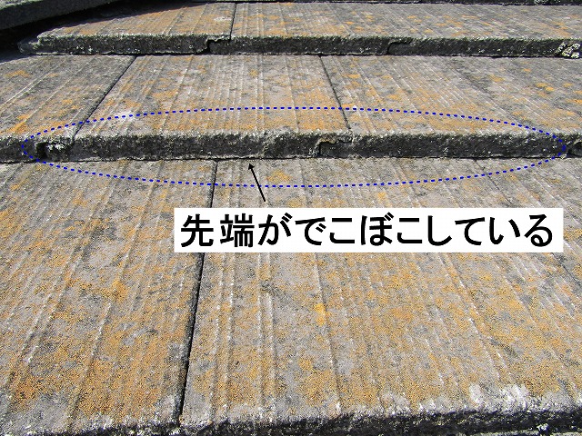 見た目は厚みがあるのでセメント瓦によく似ていますが、瓦の先端がでこぼこしているので見分けることができます。セメント瓦はツルっとしています。