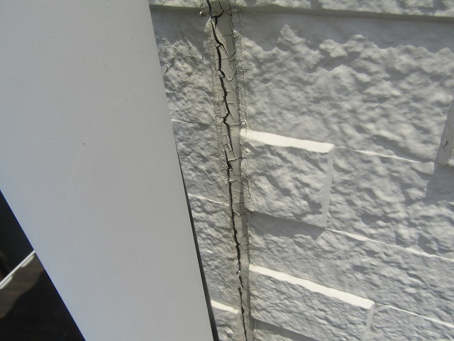外壁のシーリングも劣化していると雨漏りの原因になります。必ず現地調査で見るポイントです。↓