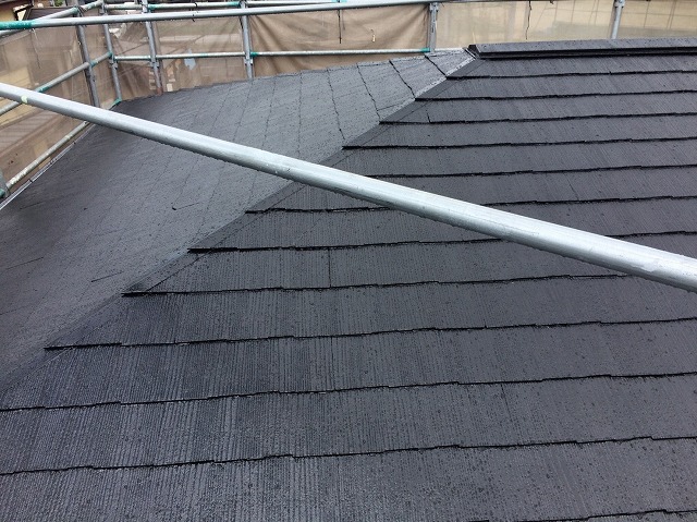 ↑こちらが塗装前の屋根です。下から見ると瓦と瓦の間にこけが詰まっているのが分かります。この部分は高圧洗浄機で下から洗浄ができないのです。なぜかといいますと、瓦は、上からの雨をしのぐので、下から水が入ると、瓦の間に入って雨漏りしてしまうからです。