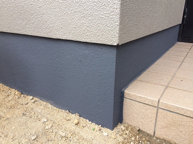 基礎はグレーの中でも藍色が入ったような色味が落ち着いた雰囲気の外壁によく合っています🎵