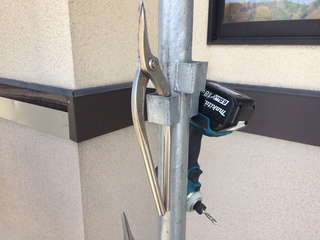金属の板を現場で胴差部分にぴったりと合うよう加工します。