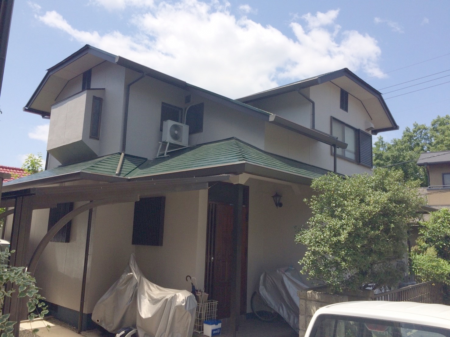 こちらのお家は屋根も外壁も塗夢のアウトレット塗料を使用しています。アウトレットでも無機質系の塗料です。無機塗料は塗料の中でもシリコンやフッ素系よりもずっと長持ちする塗料です。汚れにくいので長く美観を保つこともできます!