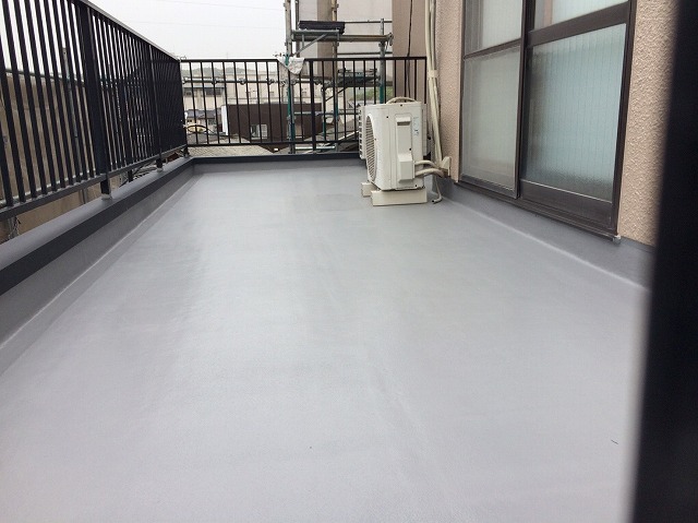 この防水工事、FRP防水といいます。