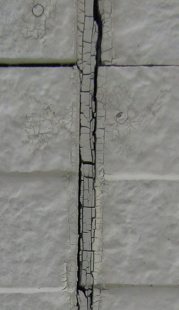 この白い部分がシーリングです。シーリングはゴムのように伸縮性があります。この伸縮性により、建物が地震や気温差により伸び縮みをするときに、サイディングのボード同士がぶつかって割れるのを防いでいるのです(d゚ω゚d)