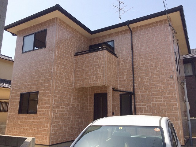こちらのお家は、石目調の可愛いデザインが魅力です!このデザイン性を残すために、今回はクリアーでの塗装をいたしました。