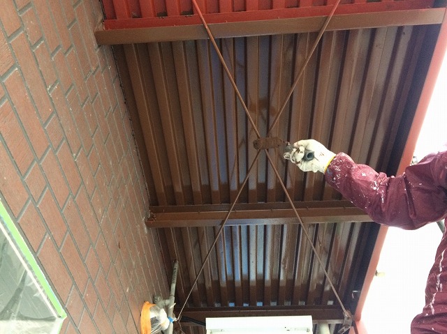 今日は鉄部分の錆止めを塗ったところの上塗りをしていました。