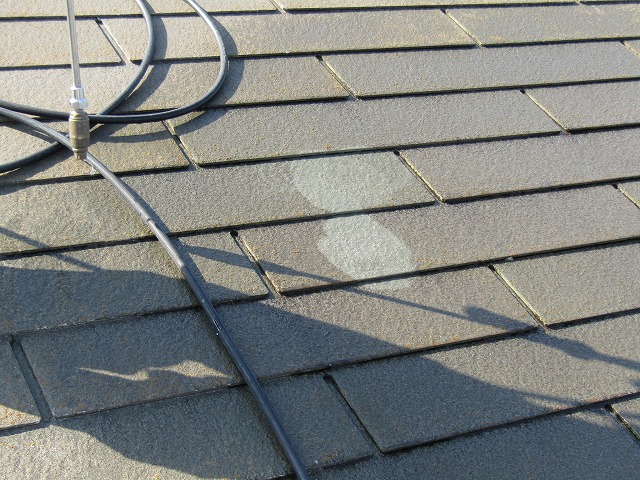 パッと見ただけでは、一見きれいな屋根に見えたのですが、高圧洗浄機で洗浄すると、一目瞭然!!屋根がけっこう汚れていたことがわかります☆★