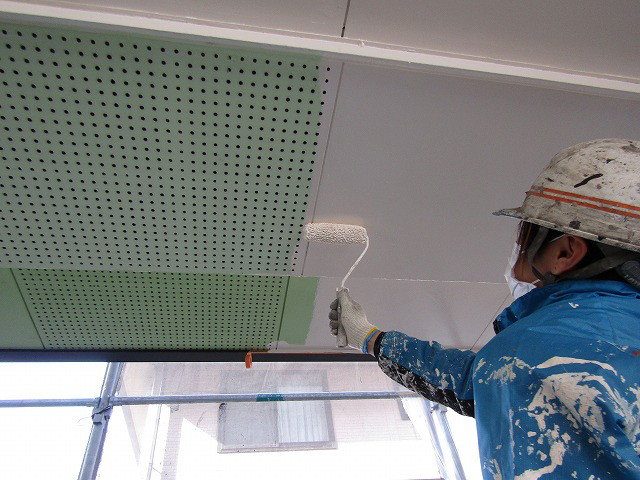 南側と西側の壁を塗り終えて、今日は駐車場の天井を塗っているところでした!