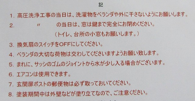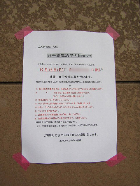 B棟とC棟では高圧洗浄のお知らせの張り紙がありました💡