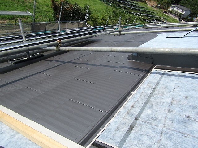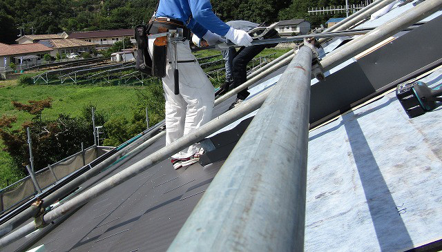既存の屋根の上に防水シートを貼り、ガルバリウムを乗せます。