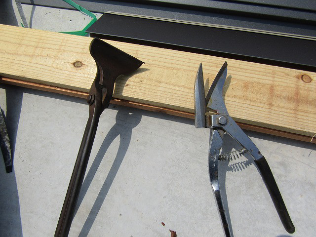 右がガルバリウムを切るはさみで、左はガルバリウムをグイっと曲げるのに使われていました 。