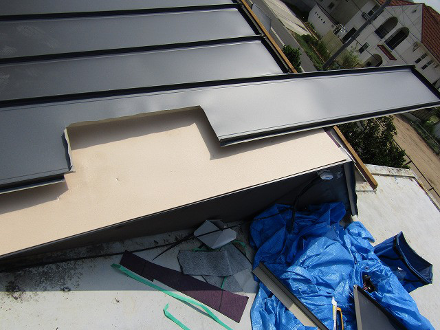 ガルバリウムの加工、器用な職人さん~屋根葺き替え工事 倉敷市S様邸~