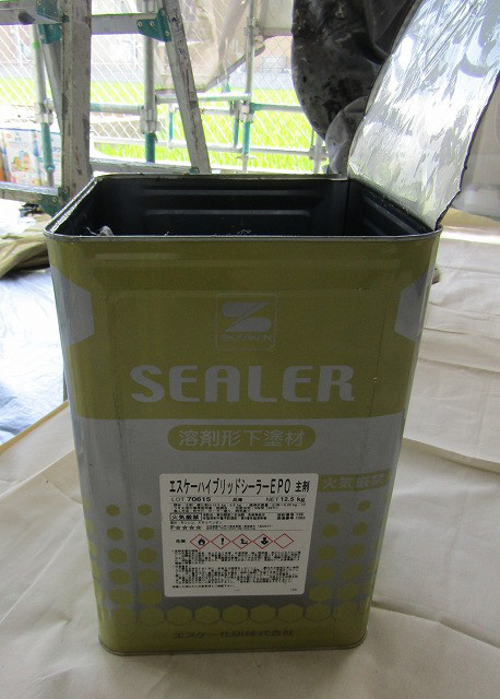それから、下塗りをしていきます!下塗りは上塗りの塗料との密着性を高くするために塗ります。そう!接着剤のような役割です。 触ってみると、確かにペタペタ指にくっつくような感じでした。