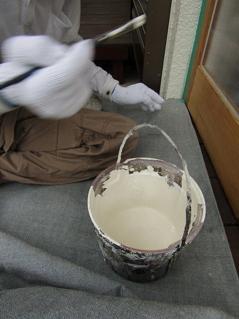 まずは、外の塀の塗装をしている様子です。