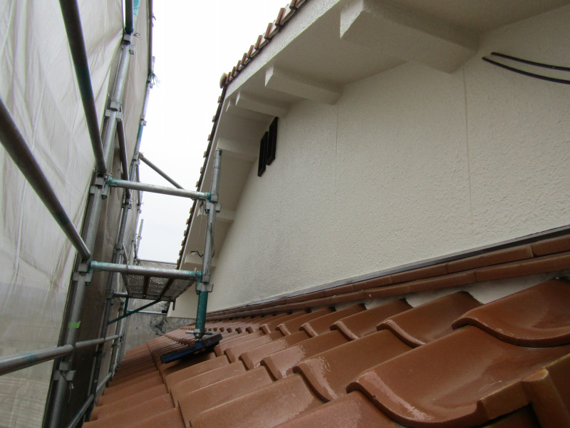 瓦と塀の継ぎ目の細かいところは小さな刷毛で丁寧に塗装していきます。