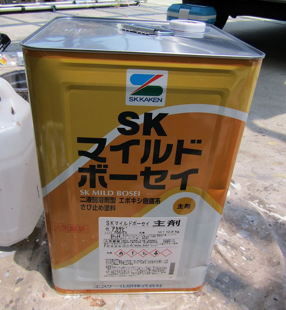 雨戸の塗装も、外壁や雨どいと同じく3回塗るのですが、1回目では”サビ止め” を塗ります。