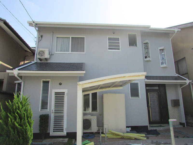 改修前の外壁色も同色のグレーでしたので、塗り替えた~って感じではないですがご主人も綺麗になったと喜んで頂きました。