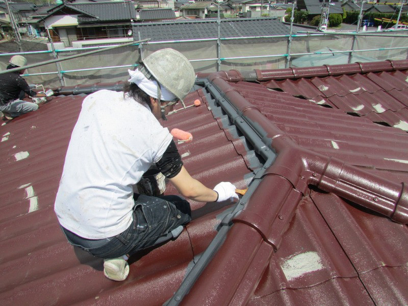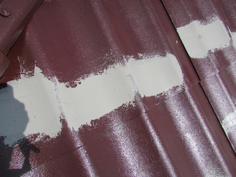 塗布しているのはSK化研屋根フレッシュシリコン。