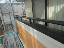 アルミ手摺は入念にケレンしミッチャクロン塗布後にクリンマイルドシリコン2回塗り。