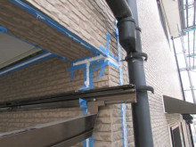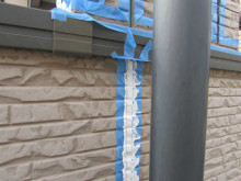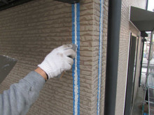 シーリングを撤去した後に、目地の各所にテープを貼りプライマーを塗布します。