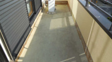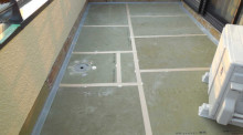 塗装工事は無事終わり、本日の工事はベランダのシート防水。