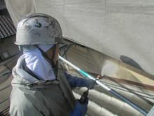 今日の作業は屋根のケレン作業と高圧洗浄。