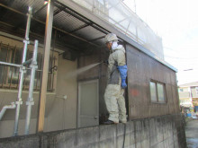 今回はお客様の都合で屋根のみ塗装しますので洗浄時に外壁に飛んだ汚水を同時に洗浄していきます。
