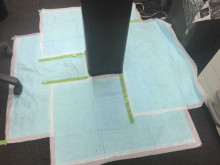 漏れるといけないので柱の足元には水分吸収シートを敷き込みました。