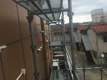 近内はビルで高さもあるので予め足場を設置してからの作業となりました。