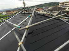 K様は台風11号の影響で棟板金が吹き飛んでました。棟修繕も仮設足場が必要ですから屋根塗装も同時にさせて頂きました。