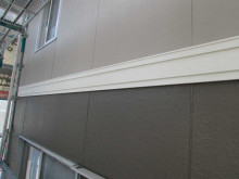 外壁の目地の割れ箇所が多かったので微弾性フィラーという材料を目地に一度塗り込みさらに外壁全体に塗りました。