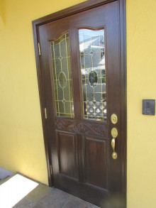 このドアの改修は難しくペンキを塗ると木目が消えて台無しになります。