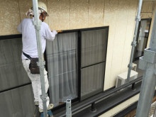 先日足場をかけ昨日は外壁のシーリングの撤去打ち替えをしています。
