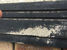 シーリングがかなり劣化していたため胴差の裏から水が廻り基材劣化と塗膜が捲れています。