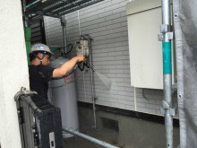 今日の作業はベランダのガルバニュウム鋼板が完了したので、外壁のケレン作業と高圧洗浄。