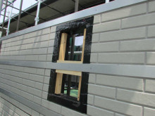 今日は下地の胴縁を入れています。この胴縁にガルバニュウム鋼板のスパンドレールを貼り込んでいきます。
