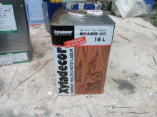 外壁の無機塗料(スーパーセラトップ)の塗装が終わり、今日は木部にはキシラデコール塗装。