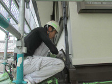2Fでは職方が水切りの狭い部分をクリンマイルドシリコンにて塗装しています。