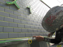 気が狂うほど細かい作業です目地一本、一本にマスキングテープを貼っていきます。