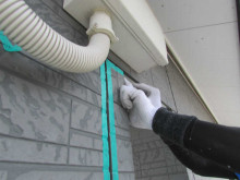シーリング工事はサイディングボードでは切れると漏水しますから重要な役割を果たしますから塗装前に再度チェックします。