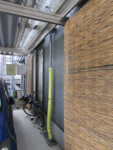 今回はカーポートの上にバタ板を敷き込み基材に荷重が掛からないように工夫しました。