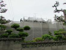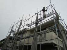 仮設足場を架けシートを掛けると風が吹くとその影響でシートが風を含み足場が揺れてしまいます。