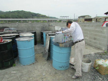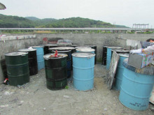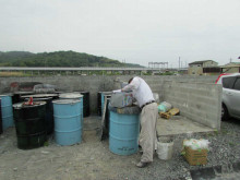 十数本あるドラム缶も約1ヶ月程度で満タンになり産廃業者に引き取にきてもらいます。