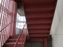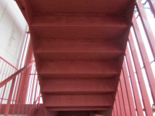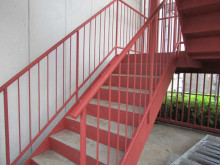 先日階段室のサンダーケレンをお伝えしましたが、今日は錆び止め施工。