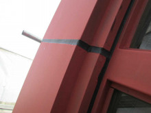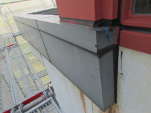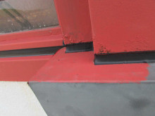 この画像は5階部分のボンテ鋼板と鉄骨の飾りが合体した部分で、室内に漏水しているとの事でシーリングは入念に検査します。