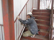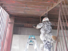 先日高圧洗浄が終わり今日の作業は屋外階段鉄骨サンダーケレン。