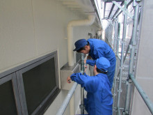 今日から足場を解体してますのでまだ塗り残した部分を急ピッチで塗装しています。