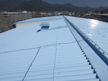 これだけ大きな面積を遮熱塗料で塗装すると工場内部の室温は3~5度程度低下すると思います。