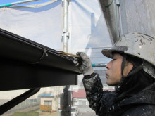 本日の作業は屋根の端部を刷毛を使用し塗装しています。
